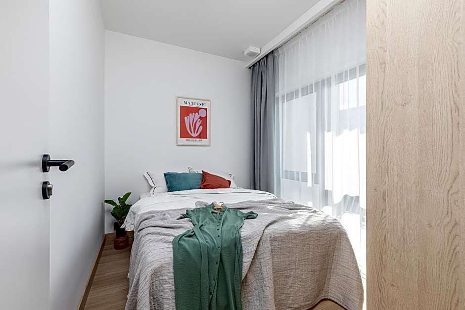 The self-check-in went smoothly. The underground parking was great – convenient and secure – though it has a cost of 60pln per day. No other parking available near by. We didn’t cook, but the kitchen is spacious and appeared very clean. 10 min from the airport, at the edge of the business district. The building is new and offers a variety of amenities, such as a gym, a coffee vending machine, and workspace.