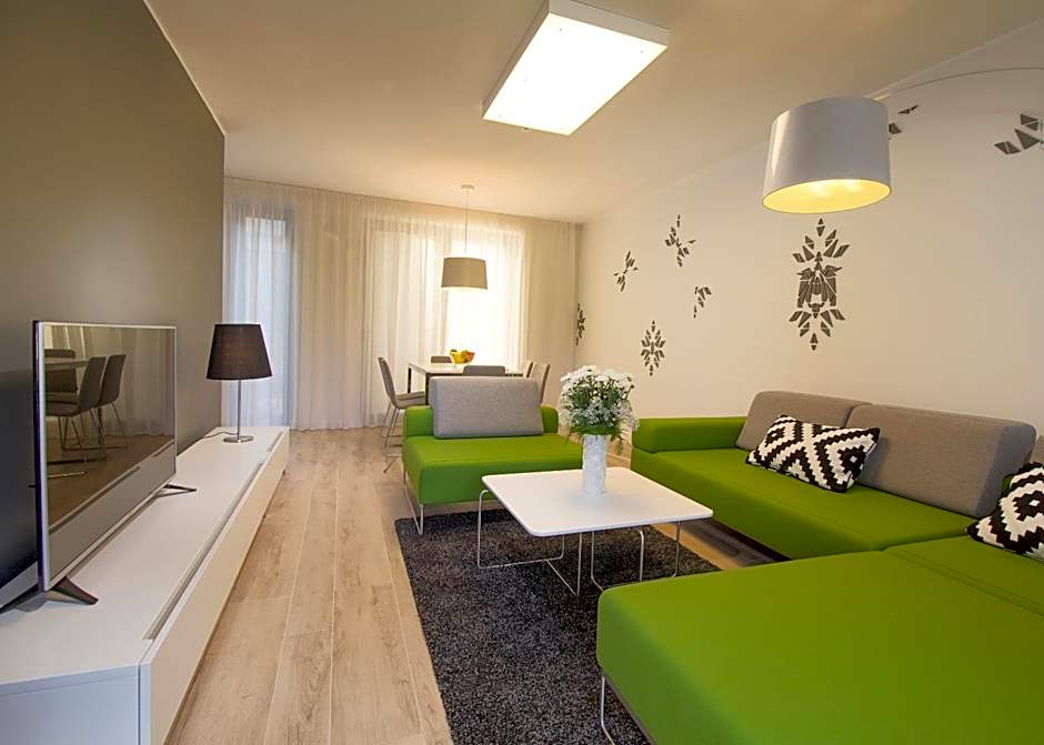 Featuring a private entrance, this air-conditioned apartment is consisted of of 1 living room, 2 separate bedrooms and 2 bathrooms with a walk-in shower and a bath. In the kitchen, guests will find a stovetop, a refrigerator, a dishwasher and kitchenware. The spacious apartment offers soundproof walls, a tea and coffee maker, a seating area, a flat-screen TV with cable channels, as well as garden views. The unit offers 4 beds.