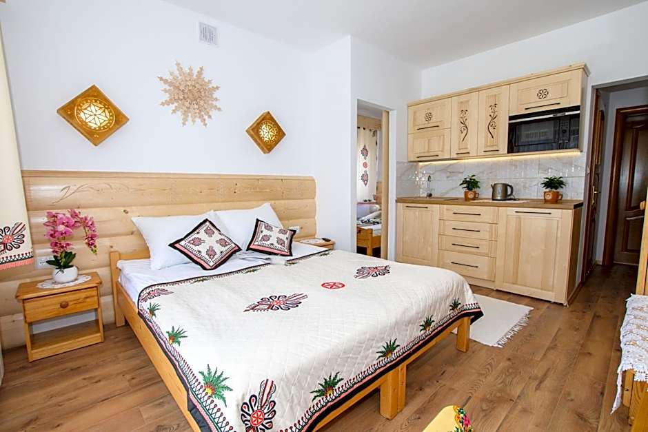 Amazing location in piece place but at the same time near to the bust station (3 min by walk) Near to Antalowka small beautiful hill with view on mountains Breakfast was delicious Room occupied with kettle that’s nice Balcony very cosy (with small table and chairs ), you can seat and enjoy with stunning view on mountains
