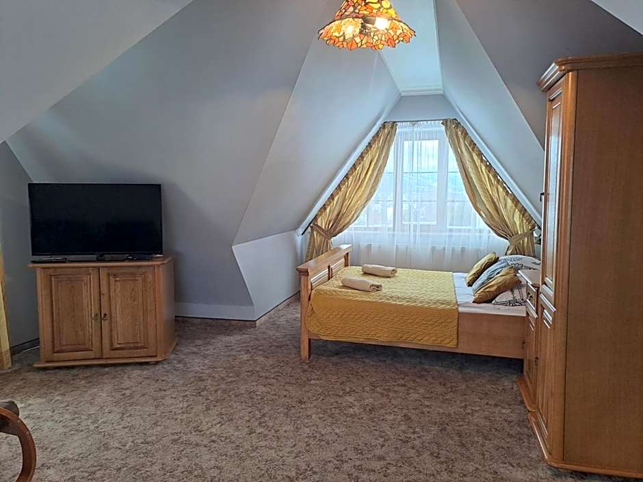 The house is a little bit far from the bus station (near 2 km), but because of that it is in quite place with great view on the mountains. The room was clean, with a fridge, electric cattle, dishes, balcony and separate space for chilling and enjoying the mountain view. There is a common kitchen in the house so You can cook something.