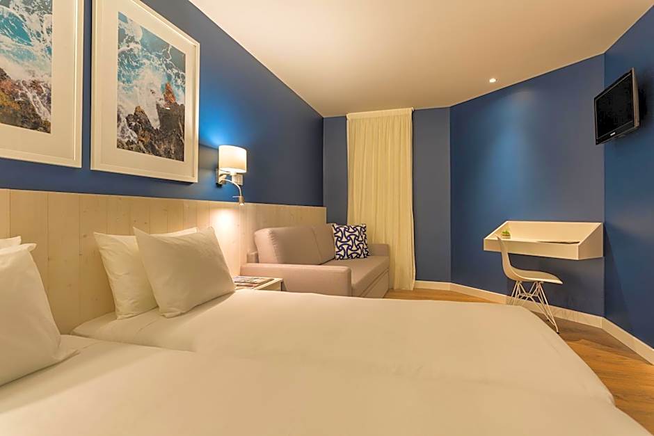 These spacious, air-conditioned rooms feature modern décor with WiFi, a flat-screen satellite TV, telephone and mini-fridge. Each has either a terrace or balcony and a private bathroom with shower and hairdryer. This room includes 3 beds and can accommodate an extra bed.