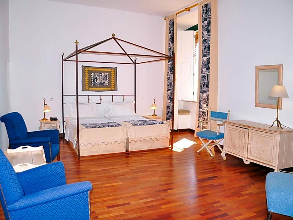 This spacious suite with garden views features twin canopy beds and a chaise long. It has air conditioning, a flat-screen TV, a telephone, a mini-bar and a private bathroom with toiletries and a hairdryer.