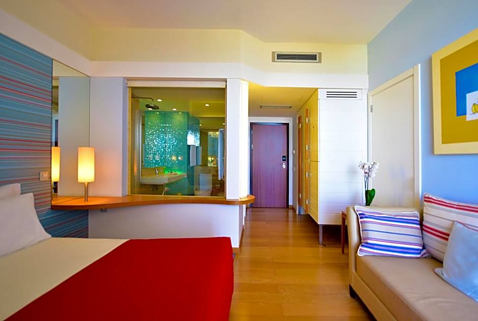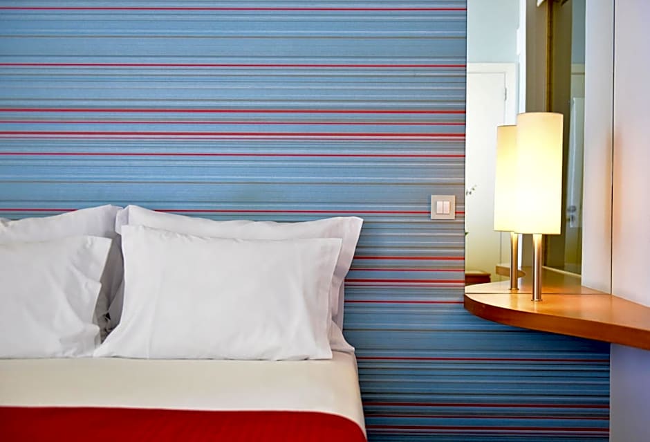It is elegantly decorated with modern furniture in bright colors. Each of the air-conditioned rooms has a balcony.