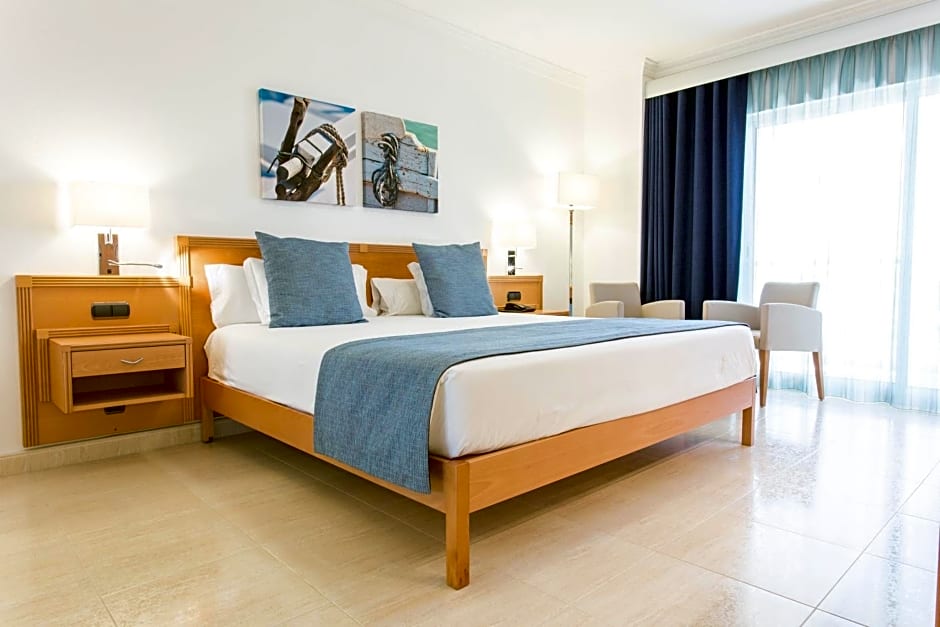 Air-conditioned twin room with satellite TV, private bathroom and lateral sea views. It can accommodate 2 adults and 1 child, up to 11 years old.