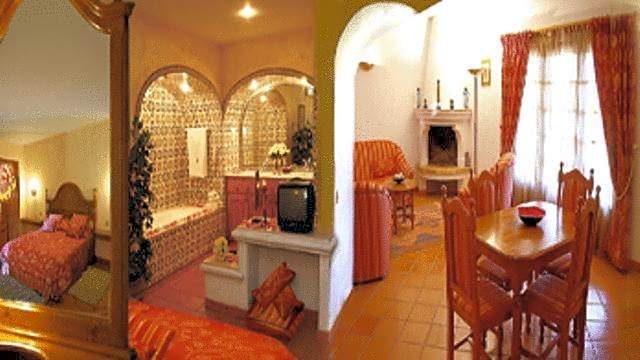 This spacious suite features a balcony and a separate living room with a kitchenette and dining area.