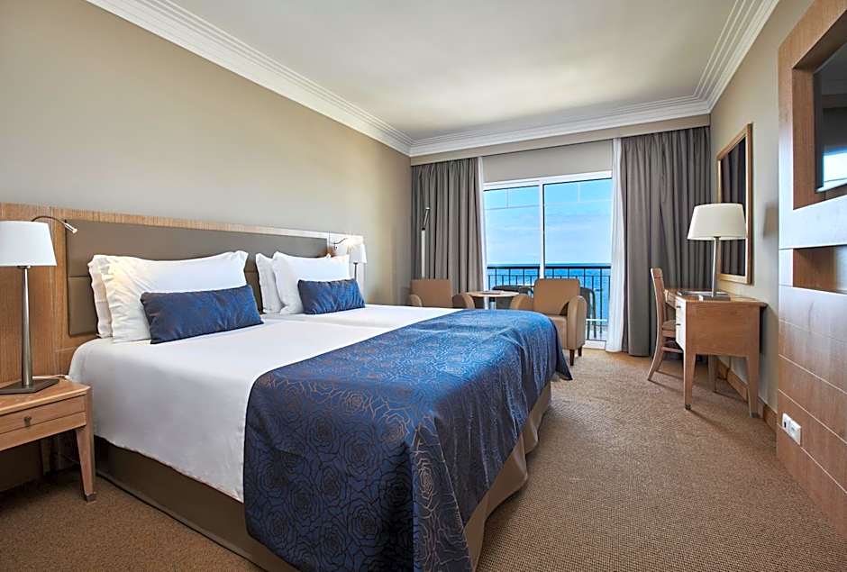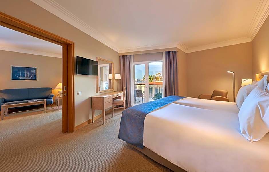 At Hotel Porto Santa Maria - PortoBay - Adults Only, guests can choose from Studio rooms with partial sea view or rooms with sea view, both accommodating up to 3 adults with twin beds and a size of 258 sqft. The Junior Suite option offers a larger room size of 431 sqft with the same occupancy and bed configuration, and also does not allow smoking.