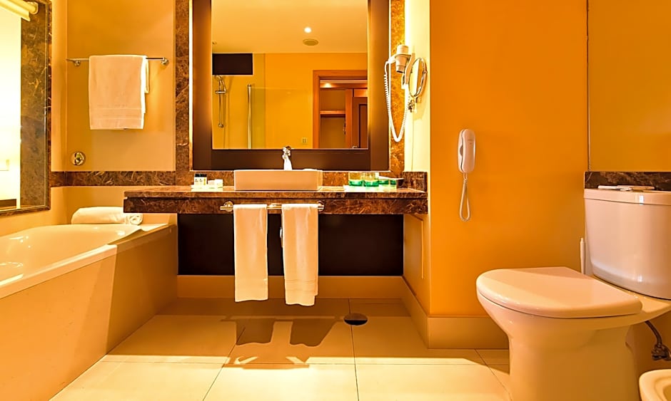 The spacious twin/double room offers air conditioning, a mini-bar, a balcony with sea views as well as a private bathroom boasting a bath or a shower. The unit has 2 beds.
