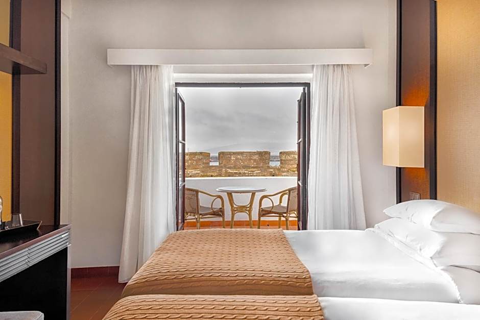 Located in a beautiful 16th century fortress, this room is contemporary decorated with wooden furniture and tiled floors.