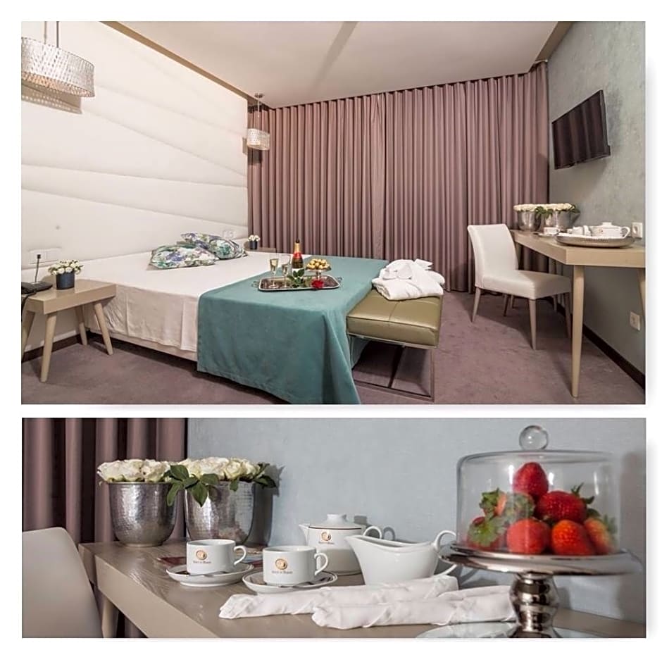 The hotel offers a variety of room types including Superior Double Rooms with or without balcony, Standard Double or Twin Rooms with an extra bed, Romantic Suites, Deluxe Suites, and Double Rooms with spa baths. Occupancy ranges from single to triple, with smoking not allowed in any of the rooms. Beds offered include Queen, King, Double, and Twin sizes, with room sizes varying from 258 to 861 sqft.