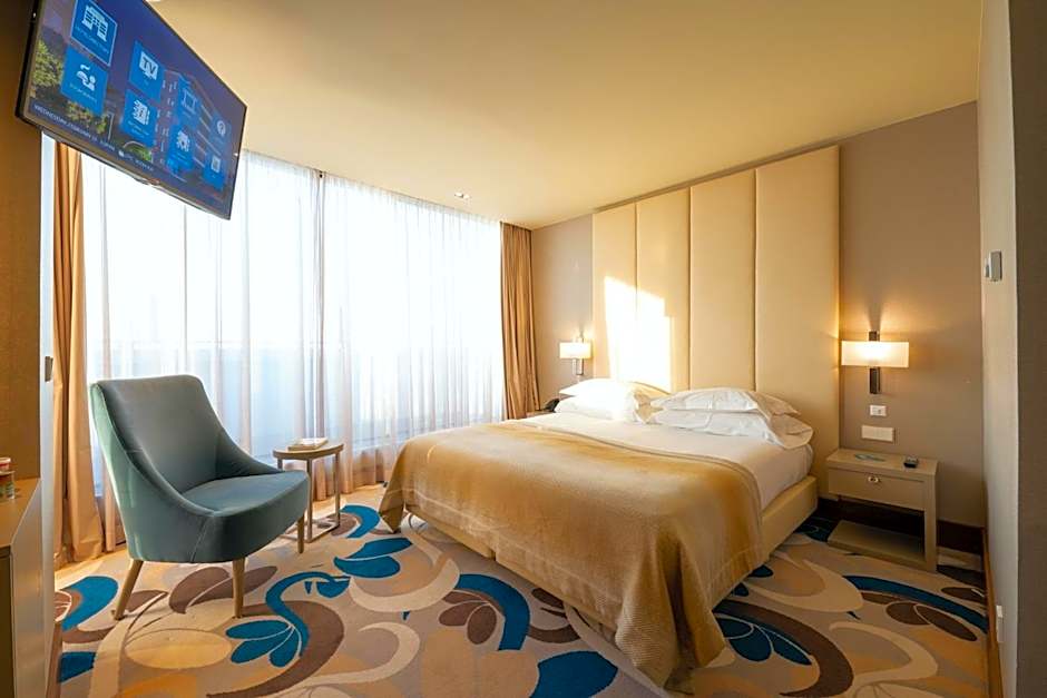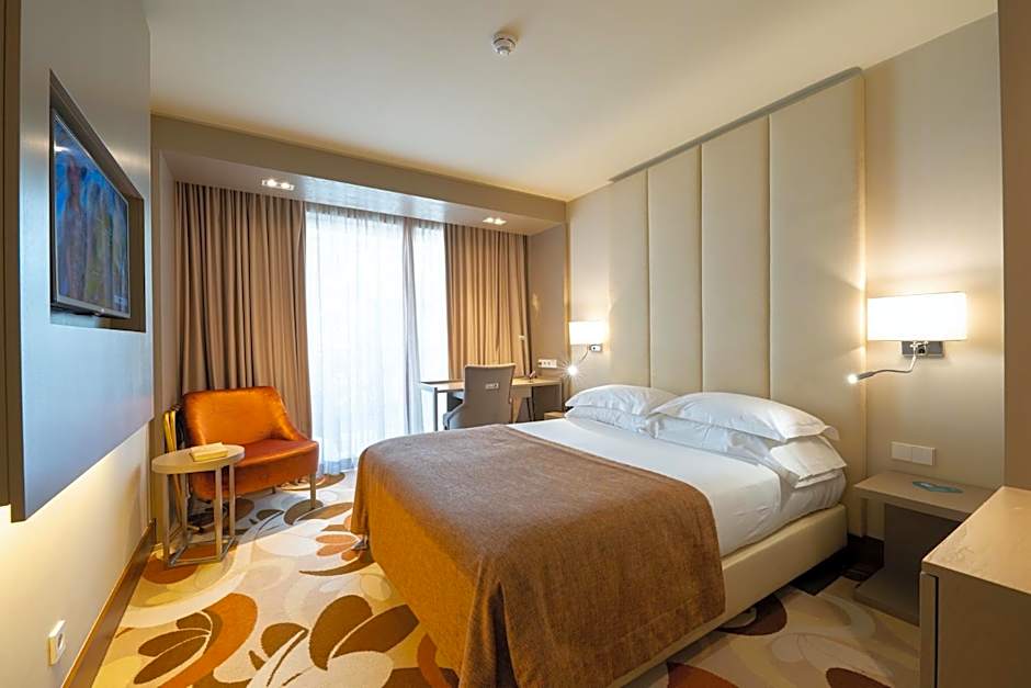 DOUBLE SUPERIOR WITH TERRACE 2 ADULTS + 1 CHILD is 237 square feet and includes a queen-size bed 150-154 width.