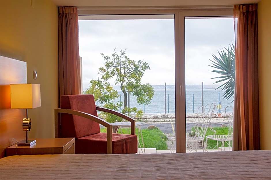 Located in the wing closest to the sea and the marina of Oeiras, this double room features a balcony with direct access to the garden and sea views. it has a seating area with sofa, a refrigerator, cable TV and private parking.