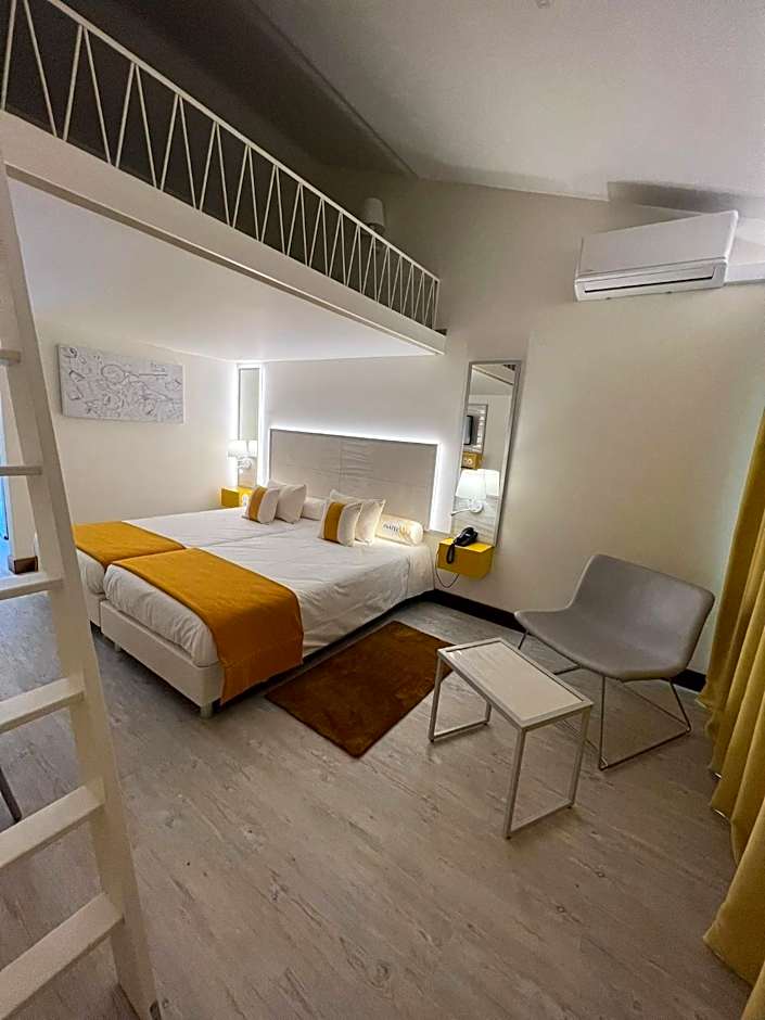 The hotel offers a variety of room types including Superior Double Rooms with Terrace, Superior Plus Double Rooms, and Standard Double Rooms. All rooms do not allow smoking, accommodate 2 adults, and some can accommodate 1 child. Bed sizes are primarily 2 twin beds, and the room sizes are around 215 sqft.