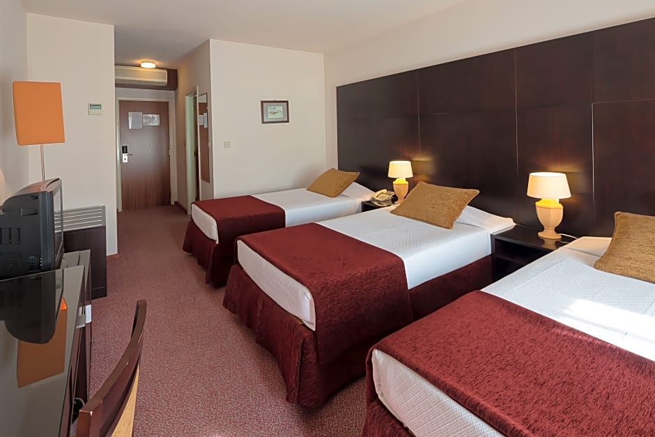 TRIPLE ROOM is 269 square feet and includes 3 single beds 80-130 width plus balcony, desk, cable tv, hairdryer, and safe and is Wheelchair-accessible.