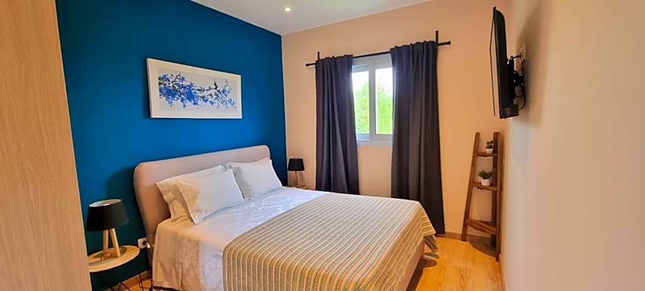 Monte Santa Catarina in Reguengos de Monsaraz offers a peaceful escape with Portuguese charm. Terraces and sun decks invite outdoor lounging, while views span lake, mountain, garden, and river scenery. A private entrance opens to a space with kitchenware and a balcony, and a bar sets the scene for relaxed evenings. For unwinding, a spa tub and hot tub are available, complemented by a private pool and an outdoor pool, plus private parking and free Wifi.