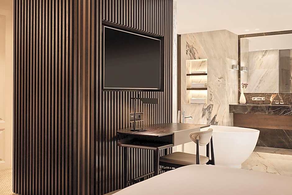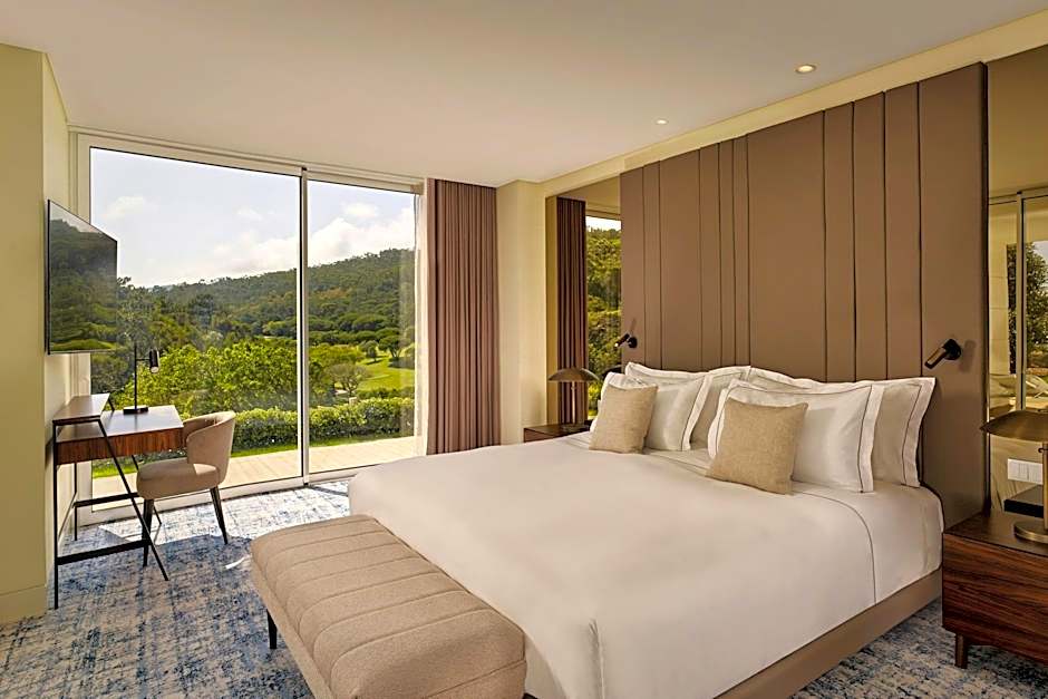 This spacious and air-conditioned room features one king-size or two double beds with additional living space and a private balcony with Sintra Mountains or golf course views. The private marble bathroom has a separate shower and bathtub and includes slippers, bathrobe, Diptyque toiletries and a hairdryer. For guests' entertainment, this room also features high-speed Internet access, a flat-screen cable TV, an iPod docking station and a Nespresso coffee machine.