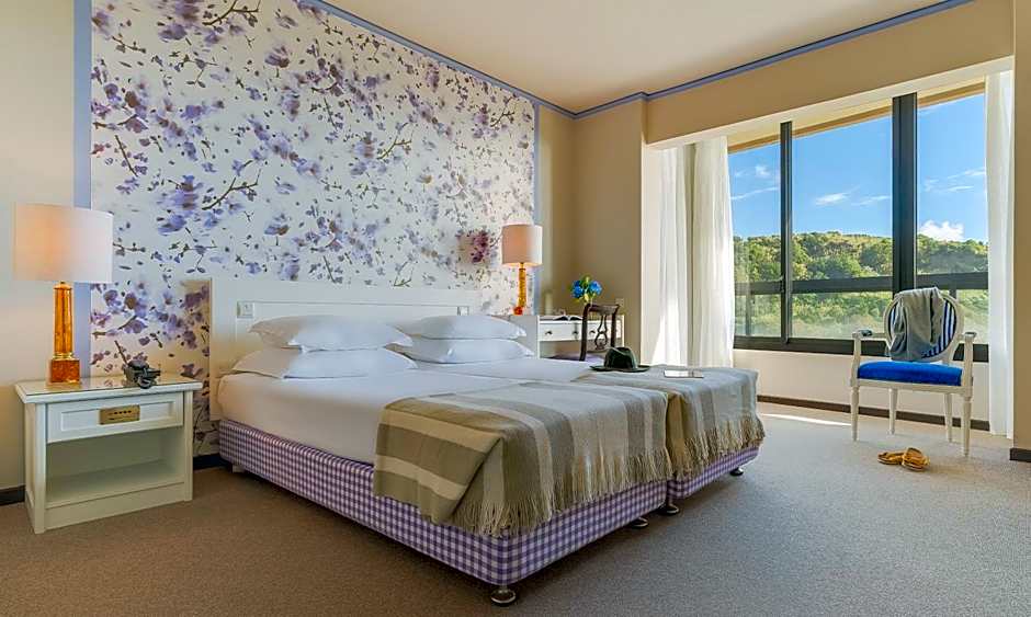 The hotel offers a variety of suites, including Senior, Triple, Quadruple, and Junior suites, with options for sea or garden views. The suites range in size from 506 sqft to 753 sqft, accommodating 2 to 4 adults with the option for children. Smoking is not allowed in any of the rooms, and bed sizes vary from twin beds to double beds, with some rooms also featuring sofa beds.