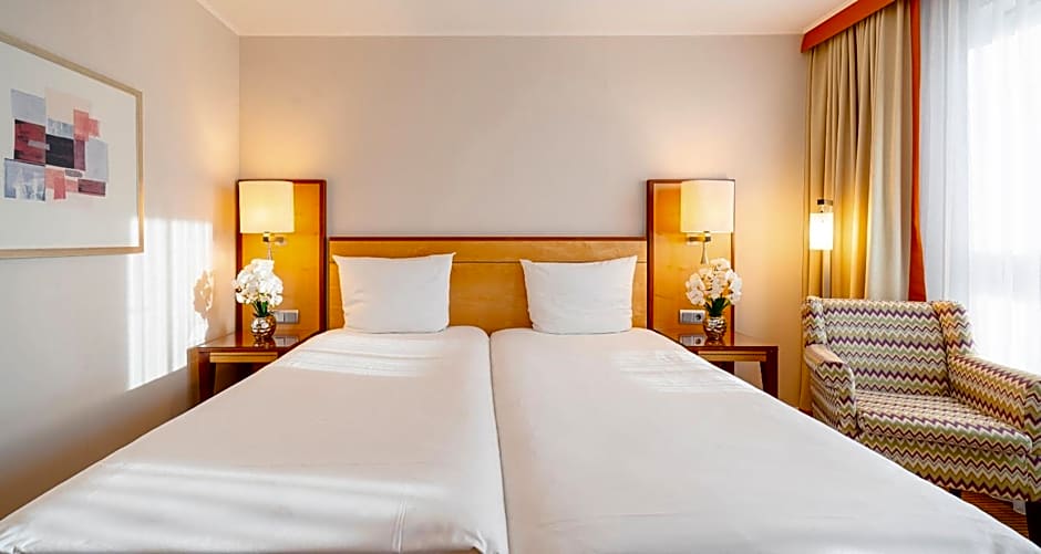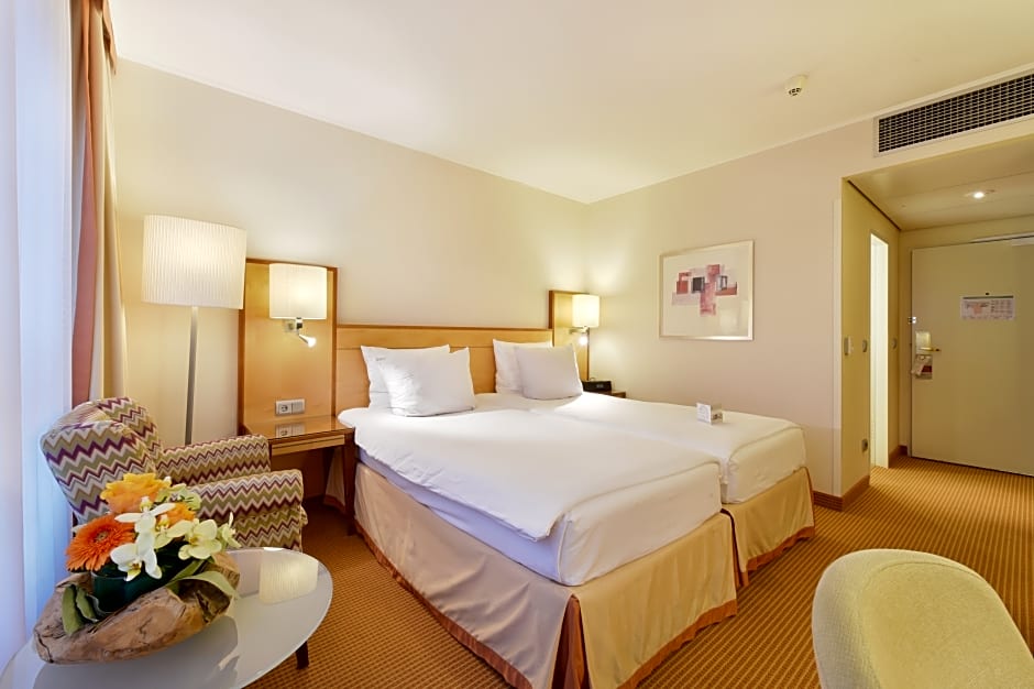 Na Mendelssohnplatz, o Q - Quadro City Hotel situa-se a apenas 0,4mi do centro de Karlsruhe, sendo uma base conveniente para explorar a região. O interior combina conforto com toques práticos — o ar-condicionado ajuda a amenizar o calor, e os hóspedes podem desfrutar de vista para o jardim ou de um panorama da cidade para emoldurar o dia. Um bar no local convida a noites descontraídas, o Wi-Fi gratuito mantém os planos em movimento, e a recepção 24 horas está à disposição para ajudar com direções ou bilhetes.