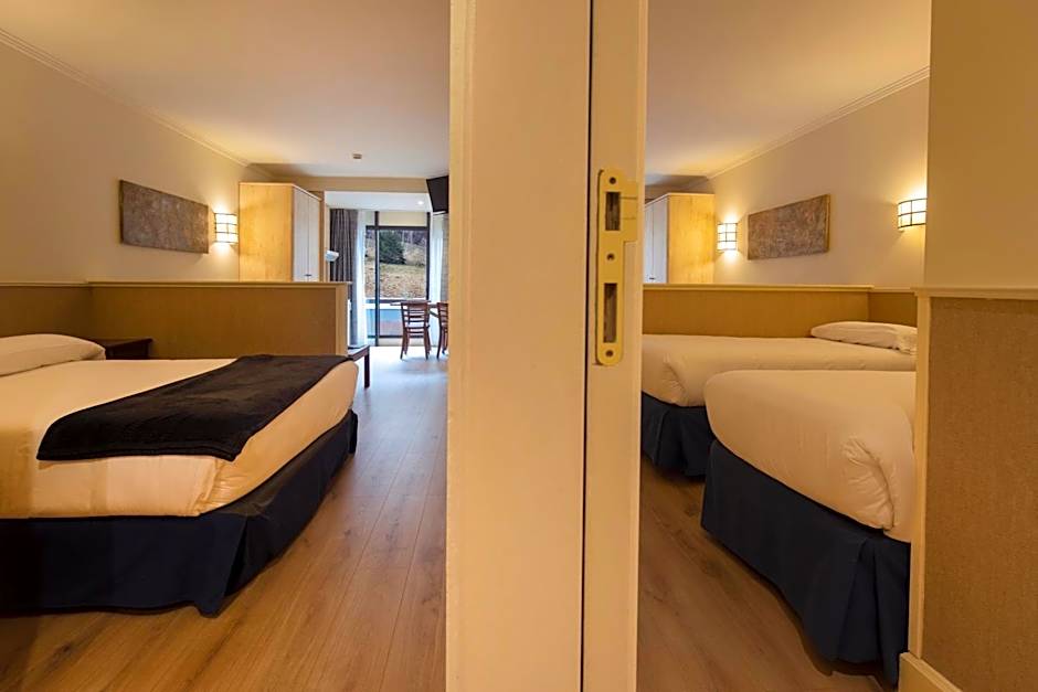 Uma variedade de acomodações atende a diferentes viajantes, desde opções Standard e Premium até Apartamentos, quartos comunicantes, Villas e várias configurações pensadas para famílias. Todas as acomodações são para não fumantes e foram projetadas para casais, famílias ou grupos, com comodidades como varandas ou banheiras e opções com vista para a montanha para melhorar a estadia. O acesso por elevador e características pensadas para a vista completam a experiência, tornando conveniente instalar-se depois de um dia ao ar livre.