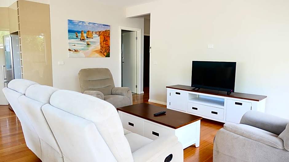 No interior, a cozinha e a varanda convidam a estadias relaxantes, com quartos à prova de som e estacionamento gratuito que facilitam o retorno após aventuras pela Great Ocean Road.