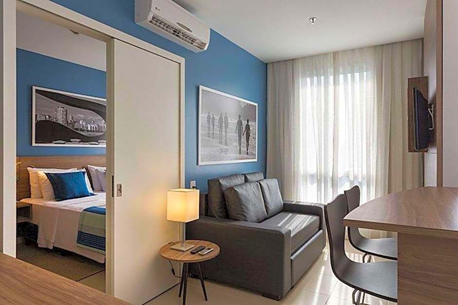 O Restaurante #1 serve culinária brasileira em um ambiente moderno e familiar, um ponto gastronômico saboroso após um dia na costa. Uma piscina externa (aberta durante toda a temporada) é de uso gratuito, complementada por um deck ensolarado para estadias com sol. Um centro de fitness bem equipado com sauna e banho a vapor ajuda a manter a rotina, enquanto recepção 24 horas e acesso por elevador acrescentam conveniência.