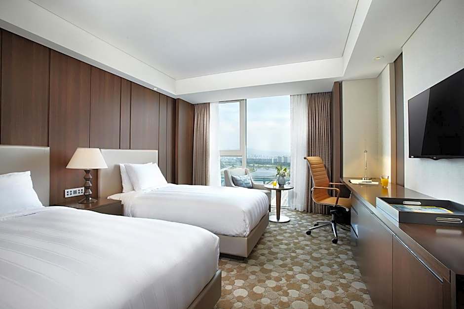 As opções de alimentação no local giram em torno do C'Cafe, um espaço familiar que serve cozinha internacional. Depois de um dia explorando Daejeon e a área da Expo-Ro, uma refeição tranquila com vista para o rio acrescenta um toque memorável à estadia.