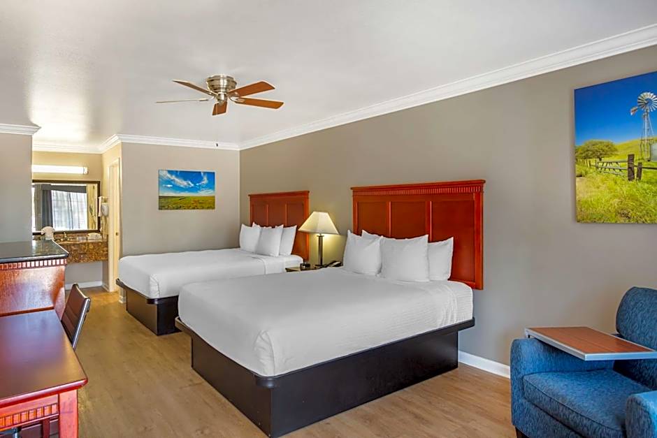As a way station for weary travelers making their way through the Central Valley this inn has hit all the right notes. The bleak setting and disagreeable odors of industrial dairies can be nullified by retreating to your room, turning up the a/c and switching on the tv.