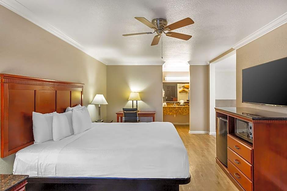 Nice clean room. The staff was friendly. Plenty of places close by to choose from for eating. Close to the freeway. People complain about the freeway noise. We were on the second floor, between the ceiling fan and AC we didn't hear any outside noise. The front desk staff was very friendly and informative.