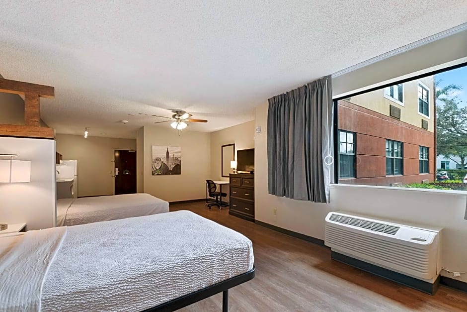 As opções de quarto apresentam layouts flexíveis: Estúdio Queen (301 pés quadrados) acomoda 2 adultos e 1 criança com 1 cama Queen; Estúdio King acomoda 2 adultos com 1 cama King; e Estúdio 2 Double oferece 2 camas de casal e pode acomodar até 5 adultos e 3 crianças. Uma combinação de conforto e bom custo‑benefício mantém a estadia pronta para planos espontâneos na região de Miami.