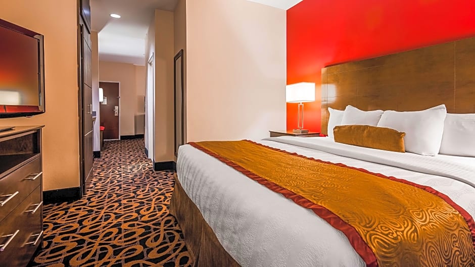 Escolha entre uma variedade de suítes, incluindo as com cozinhas compactas, banheiras com jatos, lareiras ou sofás‑cama. Algumas configurações combinam uma cama king-size com um sofá‑cama, e certas suítes podem acomodar grupos maiores — até oito adultos e cinco crianças em uma configuração. Quer viaje sozinho, em casal ou em grupo maior, essas opções de quartos flexíveis oferecem uma base confortável para explorar Monticello e a região.