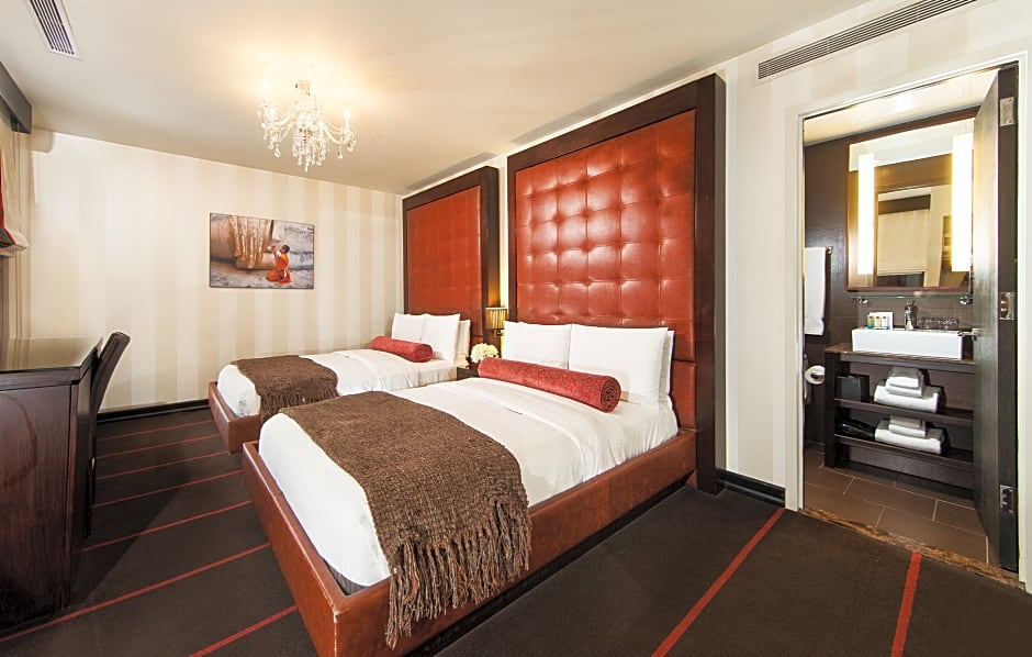 O Sanctuary Hotel New York oferece uma variedade de tipos de quartos para atender às suas necessidades de acomodação. Escolha entre o aconchegante quarto queen, o quarto de luxo com duas camas de casal ou o quarto superior queen. Cada quarto foi cuidadosamente projetado para proporcionar conforto e relaxamento durante sua estadia. Desde as camas macias até as comodidades bem equipadas, como TVs de tela plana, minibares e roupões de banho luxuosos, você se sentirá em casa. Portanto, seja viajando com um ente querido, amigos ou família, o Sanctuary Hotel New York tem o quarto perfeito para você.