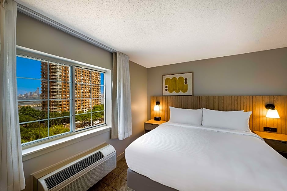 Very well equipped and homely 1 bedroomed apartment. Hotel was nice and quiet, tuck shop/kiosk at the reception is good and staff were fantastic. We also paid extra for the riverside window views which was worth it. Location is also brilliant - close to supermarket, shopping mall, restaurants and the subway to Manhattan and NYC. The Hudson riverside is about 1 minute walk away and you get the most unbelievable New York views both at day and night time. The area is perfectly safe for walking at night. We would definitely stay here again.