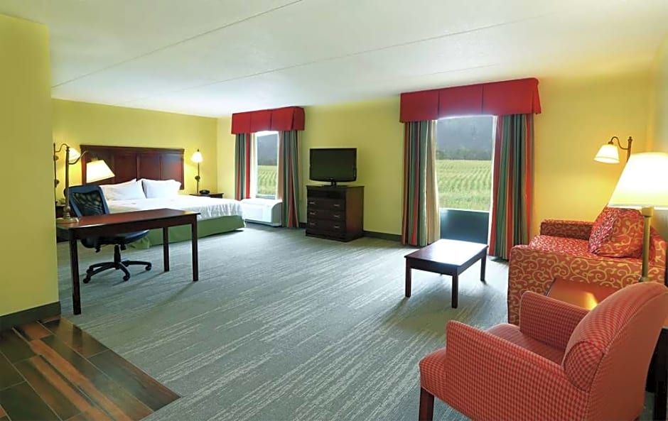 Well appointed pet friendly hotel located In a beautiful little valley with a farm and field right behind it -so it was a very restful place to stop during our road trip. Was right off the highway but we felt like we were in the middle of the countryside. Nice covered drive up area for loading and unloading the car which was appreciated because it was raining when we left. Hotel also provided luggage carts for transporting baggage to and from the room. Room was very clean and ready for us when we arrived.