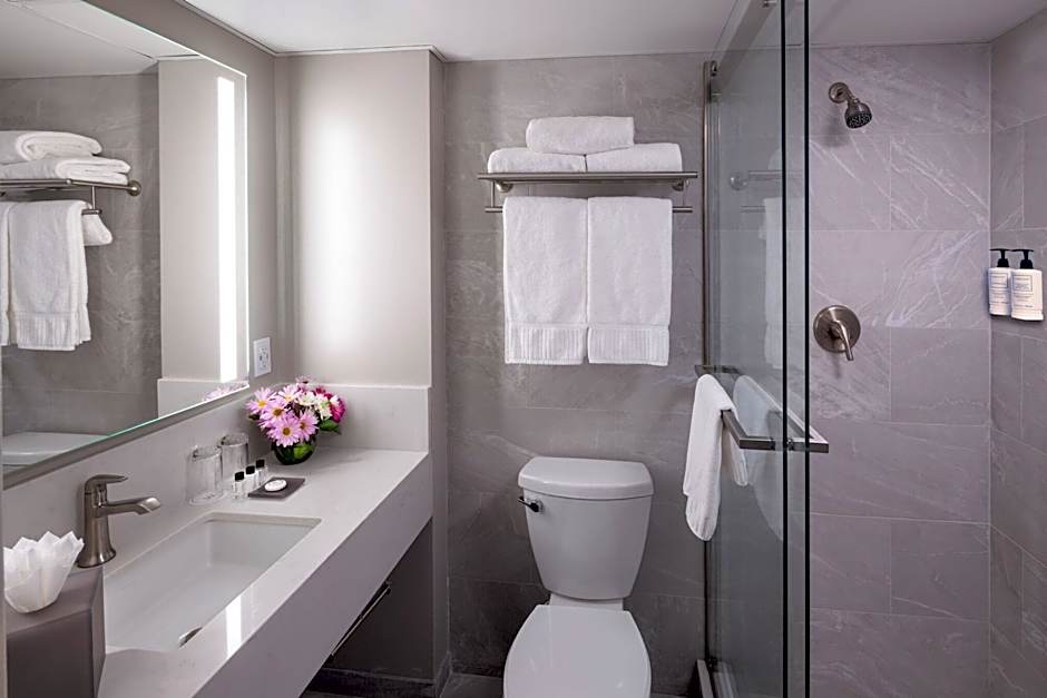A piscina coberta e aquecida funciona o ano todo e é de uso gratuito, oferecendo um refúgio aconchegante após horas explorando Seattle. A academia também é cortesia, permitindo manter a rotina enquanto a cidade reluz logo além das portas; a piscina é exclusiva para adultos, garantindo um ambiente mais tranquilo.