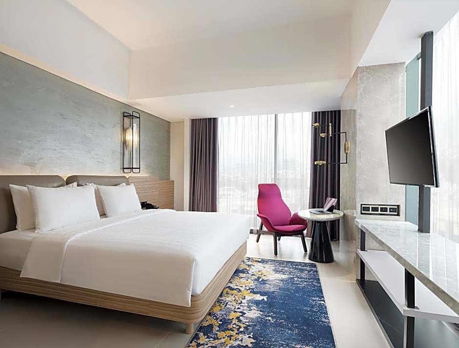 Bem-vindo ao vibrante Mercure Bandung City Centre, onde sua aventura começa a poucos passos do coração movimentado de Bandung! Situado na Jalan Lengkong Besar No. 8, este tesouro 4 estrelas oferece um começo de dia imbatível com um delicioso café da manhã incluído para todos os hóspedes. Com apenas 0,3mi de carro até o centro da cidade, você está perfeitamente posicionado para explorar as ruas animadas repletas de cultura, cor e delícias culinárias.