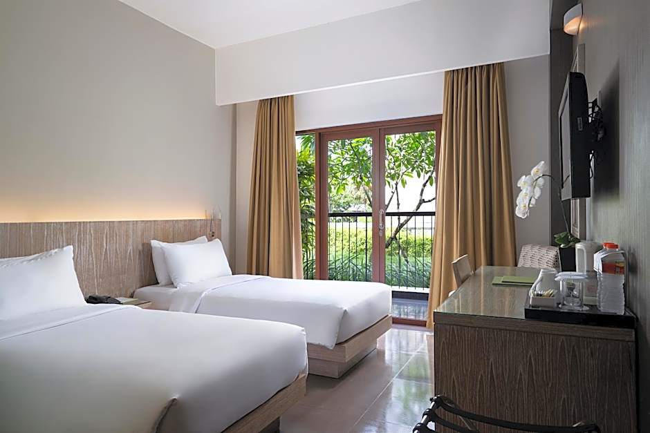 Desde o momento em que você chega, a equipe do Hotel Santika Siligita Nusa Dua está ansiosa para atender a todas as suas necessidades. Acomode-se em seu quarto com ar-condicionado, completo com varanda, Wi-Fi gratuito e amenidades de cortesia. Passe o dia aproveitando o sol no deck ou divirta-se com as crianças no jardim ou à beira da piscina. Quer esteja planejando uma escapada romântica ou umas férias em família, este hotel garante que você terá todo o conforto de casa e muito mais, coroado com um toque do encanto cativante de Bali.