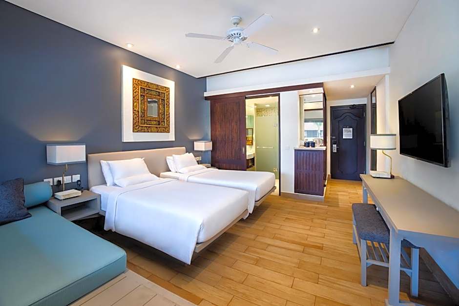 Por fim, vamos falar sobre a praia! Novotel Bali Benoa possui uma área de praia privativa onde as areias douradas e as águas turquesa convidam você a relaxar, rejuvenescer e saborear cada momento sob o glorioso sol de Bali. Pegue uma toalha de praia, relaxe e perca-se em um bom livro, ou faça um passeio tranquilo pela costa enquanto o pôr do sol pinta o céu em tons de laranja e rosa. Com uma infinidade de atividades, experiências gastronômicas excepcionais e espaços de relaxamento serenos, sua estadia no Novotel Bali Benoa será nada menos que uma escapada tropical encantadora. As férias definitivas aguardam—faça as malas e deixe a aventura começar!