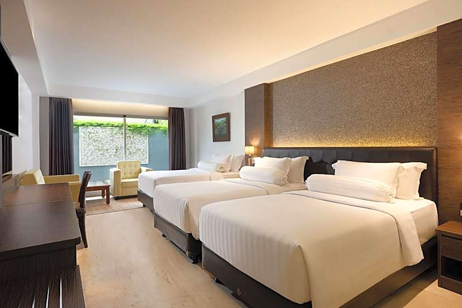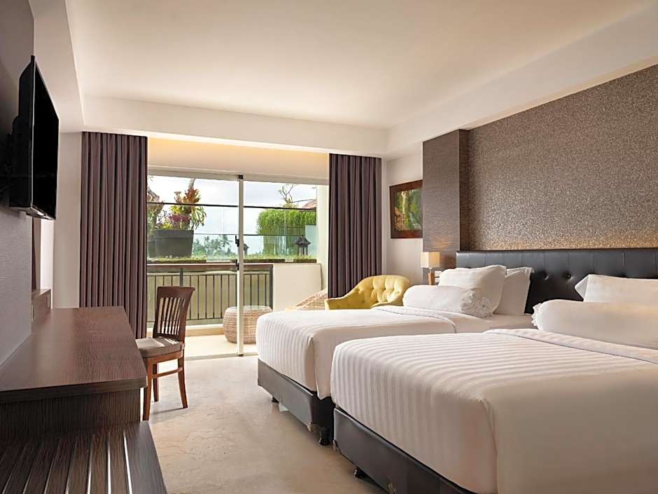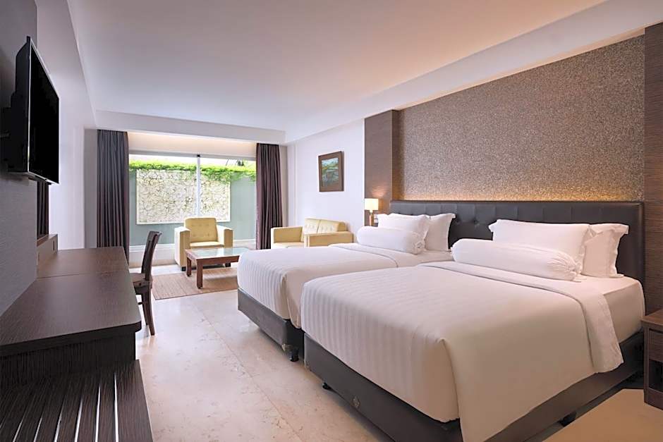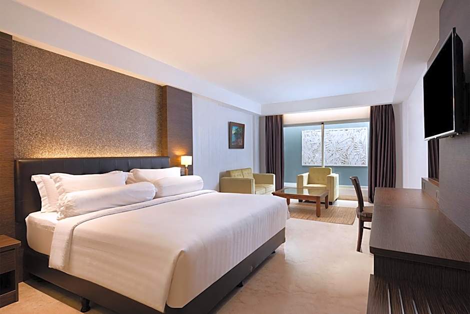 Sinta-se como realeza ao desfrutar de uma variedade de comodidades luxuosas que atendem a todas as necessidades, quer viaje sozinho, com a família ou em uma escapada romântica. Comece o dia com um delicioso café da manhã e aproveite o sol balinês na piscina externa, ou relaxe com um rejuvenescente tratamento de spa. Os pequenos podem se divertir na piscina infantil ou participar do clube infantil gratuito, enquanto os adultos aproveitam o bar, a academia e o requintado restaurante. Além disso, com Wi-Fi gratuito, estacionamento privativo e recepção 24 horas à sua disposição, sua estadia será tranquila!