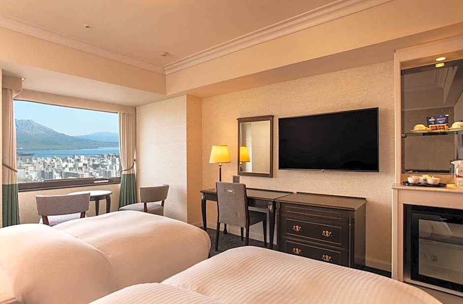 As opções de quarto abrangem uma ampla gama de estilos e vistas. As opções incluem Forest e Sakurajima Deluxe twin, juntamente com configurações com vista para o mar e para a ilha. Os destaques incluem a Royal Suite Sakurajima, Ocean View com 1356 pés², a Grand Sakurajima, 2 Twin, Ocean View, e variedades executivas e premium Sakurajima com várias vistas. Com uma lista que também apresenta suítes como Junior Suite e Royal Suite, há espaços amplos para casais, famílias e viajantes que procuram mais espaço.