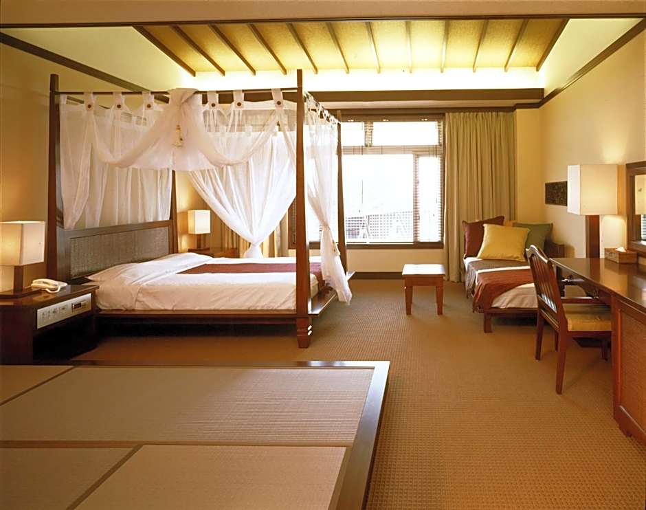 As comodidades em destaque incluem um restaurante, estacionamento privativo gratuito, Wi‑Fi gratuito e regime exclusivo para adultos para uma estadia tranquila. Serviço de transfer gratuito, banho termal gratuito e sauna aumentam o relaxamento, complementados por ar‑condicionado, terraço, jardim e quartos para não fumantes. Conveniências no local incluem recepção 24 horas e elevador, além de amenidades de banho gratuitas e banheira; instalações para reuniões/banquetes, campo de golfe, serviços de massagem e refeições infantis estão disponíveis com custo adicional.