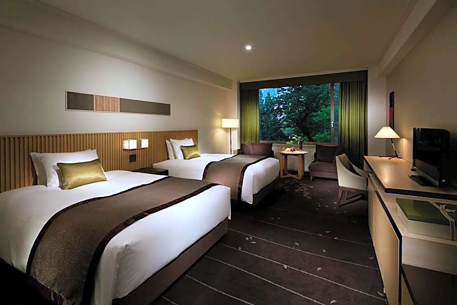 Os quartos e a atmosfera oferecem vistas de pontos de referência e isolamento acústico, além de camas extra-longas (> 6,5 ft) e toques modernos como ar-condicionado, produtos de higiene gratuitos, bidê e banheira. Elevadores ligam os hóspedes aos andares superiores, e os jardins proporcionam um refúgio sereno após um dia movimentado na cidade.