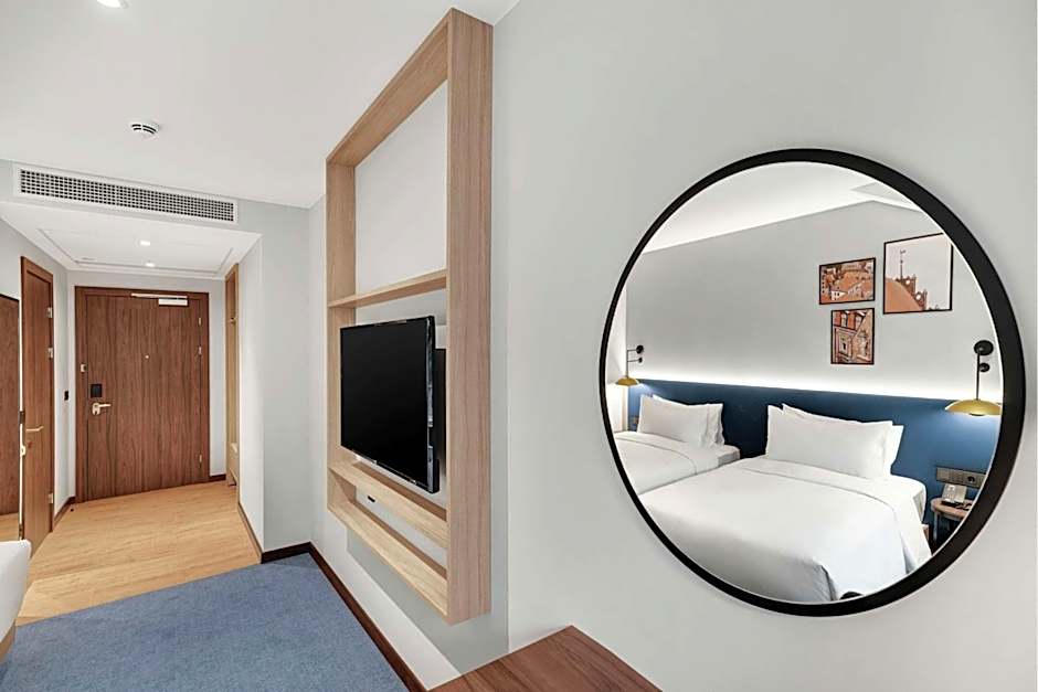 Uma variedade de acomodações aguarda, desde Deluxe Twin e Deluxe King com vista para a cidade até opções King e Twin padrão, bem como configurações familiares. Algumas plantas apresentam uma cama king combinada com um sofá-cama, oferecendo espaço flexível para adultos e crianças, com opções com vista para a cidade para adicionar um toque mais marcante à estadia.
