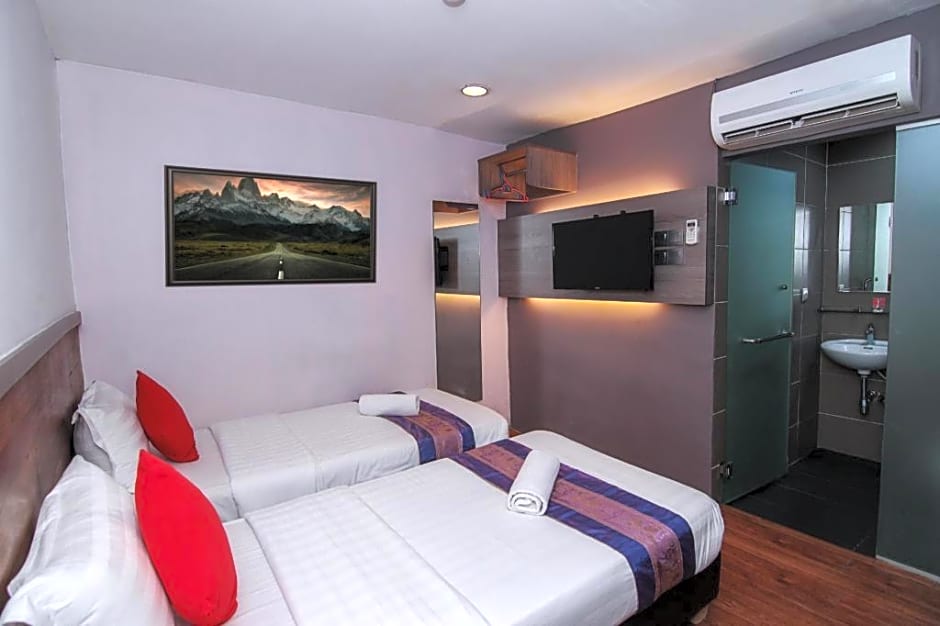 I find that the hotel is basically easy to find, and the rooms are adequate. The owner is very friendly and attentive. The room I had had a little problem, so I told the owner and he switched me to a larger new room without any additional cost. Additionally, the hotel has candy available at the reception desk, which my kids really liked. On the day to the airport, because I had an early flight and couldn't book a Grab, the owner booked one for me. I am very satisfied with this hotel. If anyone goes to Kuala Lumpur, you should book a room here. I highly recommend it.