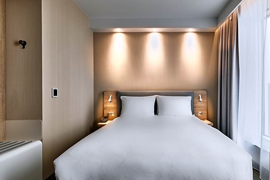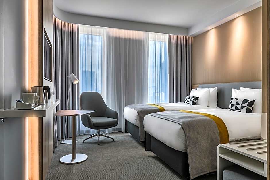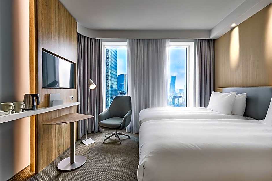 Agora, vamos falar sobre os quartos. O Holiday Inn Express - Varsóvia - The HUB oferece uma variedade de acomodações confortáveis e espaçosas, adaptadas para atender a diversas necessidades. Desde o Quarto Standard Queen até o Quarto Standard Twin com Vista, cada quarto é projetado com seu conforto em mente. Precisa de um pouco mais de espaço? Opte pelo Quarto Standard Duplo com Sofá, que pode acomodar até três adultos e três crianças. Não importa qual quarto você escolha, pode esperar uma atmosfera aconchegante e relaxante para descansar e recarregar as energias após um dia explorando a vibrante cidade de Varsóvia.