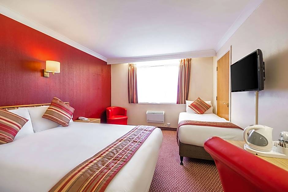Breakfast was excellent. Scrambled eggs nice and fresh, bacon was good too. Plenty to eat and lots of options. Only downside was no bananas and I'd like mugs for coffee. Parking adequate and, although on a main road junction, it was set back enough to be quiet. Room was large with big double bed. All staff friendly, courteous and helpful.