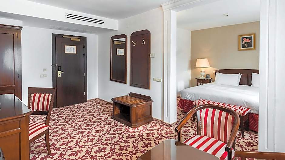 The room was a bit outdated and not sparkling clean ( cigar box on the balcony, stained old carpet ,an adherence layer in the bathtub that collected dust and unstable toilet lids). Although we were 3 ( 2 adults and 1 child) and the space was big, the sofa was not turned into a bed and I saw no additional sheets, so basically a lot of extra space for nothing. The room temperature was very low and we couldn’t get it to rise not even with the AC on. Lastly, at their restaurant it took a lot of time to get the food and it was not that tasty, which was a big disappointment considering the prices.