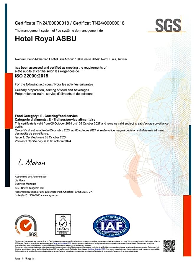 Aninhado a apenas do vibrante coração de Túnis, o Hotel Royal ASBU é o seu oásis cinco estrelas repleto de luxo e relaxamento. Imagine relaxar na sua própria piscina privativa ou saborear uma experiência culinária no restaurante do hotel, tudo isso rodeado pelo charme e pela beleza da Tunísia. Com preços a partir de apenas , este refúgio luxuoso oferece uma experiência excepcional sem estourar o seu orçamento!