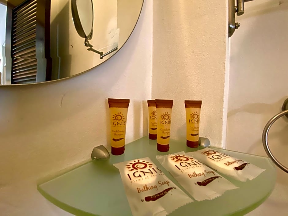 Air-conditioned room including a flat-screen TV with cable channels. It is fitted with a private bathroom and blackout drapes.