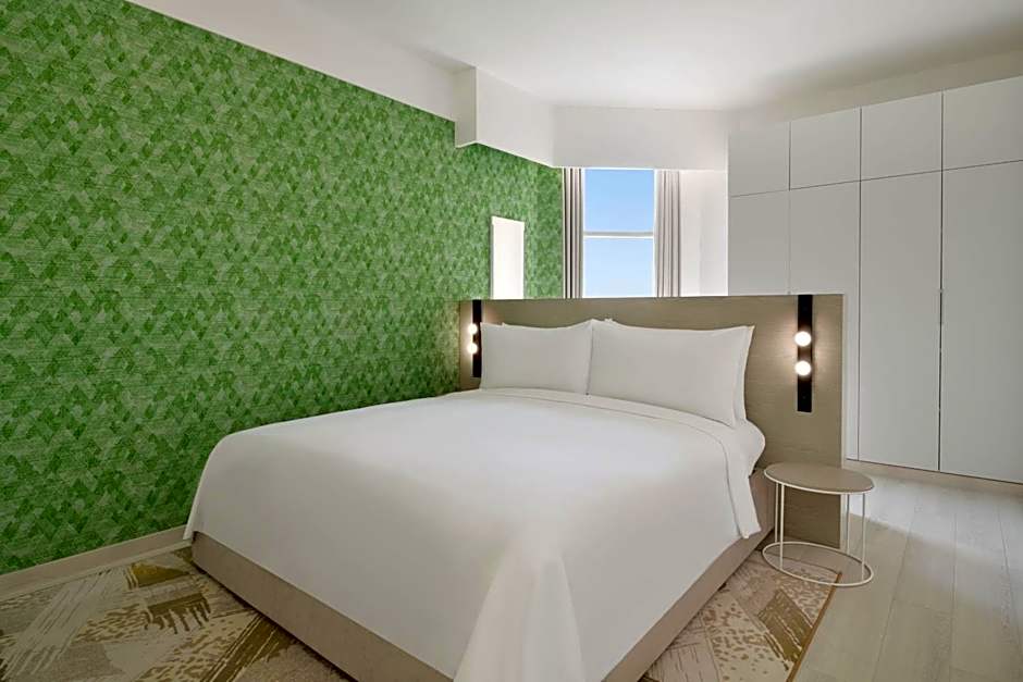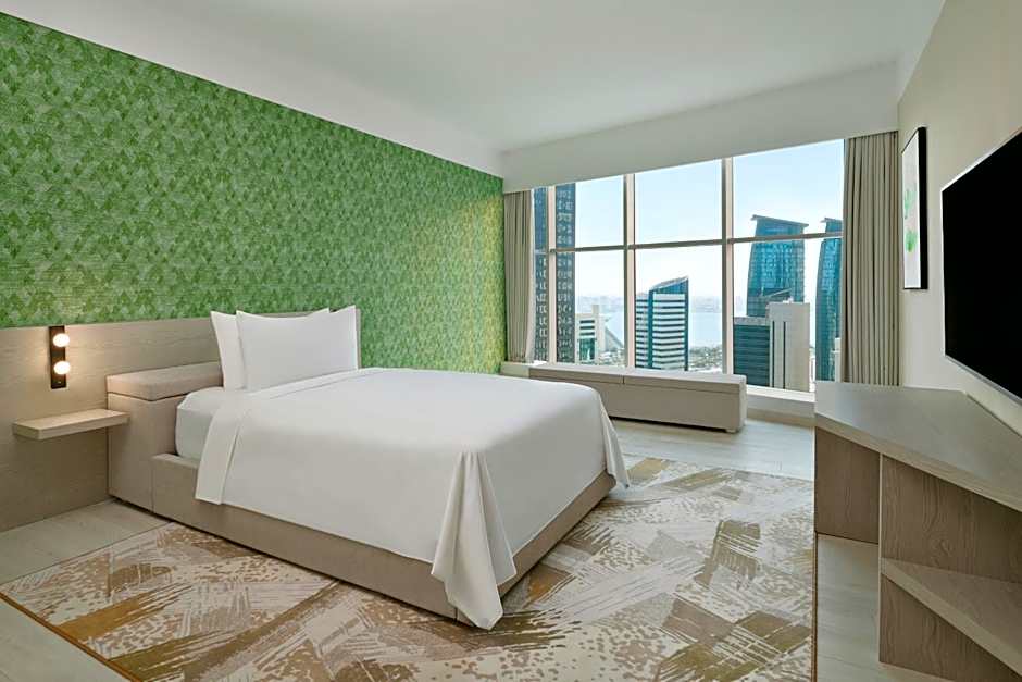 Element by Westin West Bay Doha is a 5-star hotel in Doha, Qatar, located on Umm Awaarad Street. It sits about 3mi from Doha city center, offering a beachfront setting. The property has 1,094 reviews, and the minimum price starts from $121 per night.