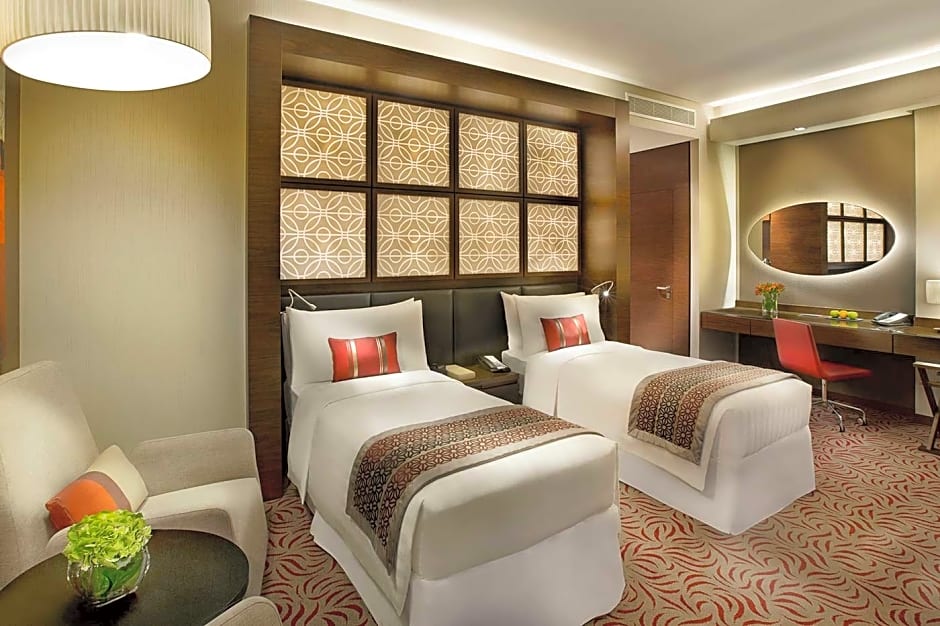 The Four Points by Sheraton Doha offers classic rooms with two twin/single beds, deluxe rooms with two twin/single beds, classic rooms with one king bed, and deluxe rooms with one king bed. All rooms are non-smoking and can accommodate two adults and one child. The room sizes range from 355 sqft to 409 sqft.