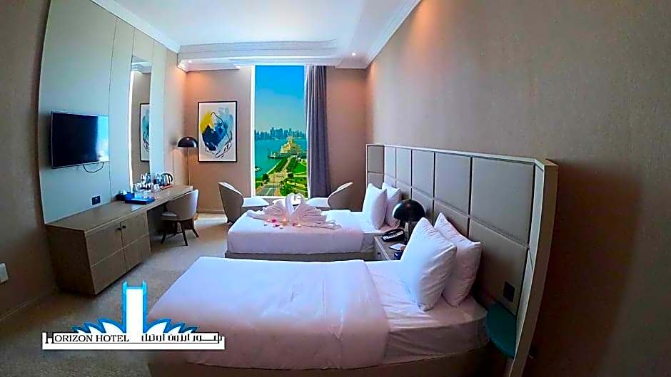 Horizon Manor Hotel offers Horizon Suites and Premium Deluxe Twin Rooms. The Horizon Suite is a spacious suite with a size of 657 sqft, non-smoking, and can accommodate 2 adults and 2 children. It has 1 King size bed. On the other hand, the Premium Deluxe Twin Room is a smaller room with a size of 344 sqft, non-smoking, and can accommodate 2 adults and 1 child. It has 2 Twin beds.